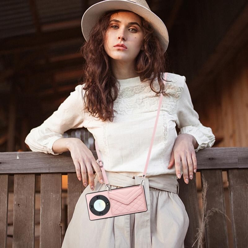 Για Honor X9a / Magic5 Lite Rhombic Υφή κάρτα τσάντα RFID υπόθεση τηλεφώνου με μακρύ κορδόνι (Rose Gold)