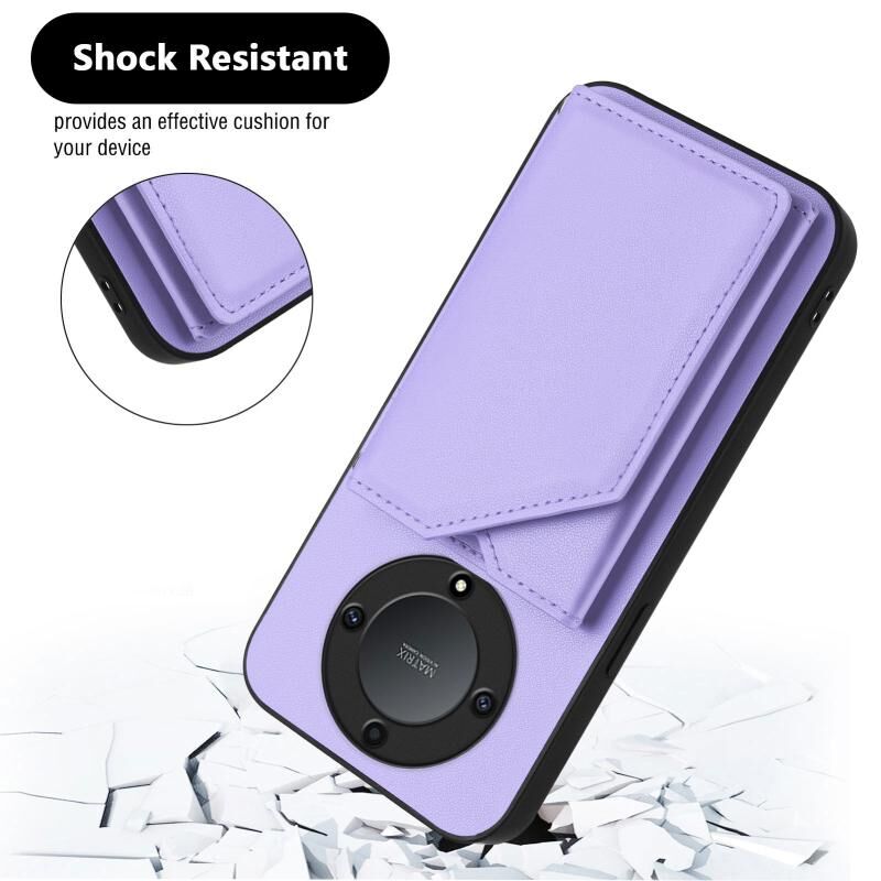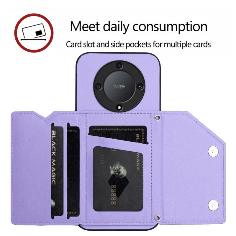 Θήκη τηλεφώνου για Honor X9A / Magic5 Lite με αίσθηση δέρματος, τέσσερις θήκες καρτών και λουρί καρπού (Μωβ)