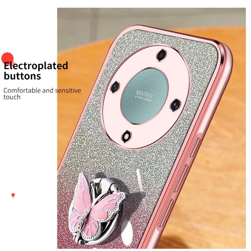 Θήκη κινητού τηλεφώνου TPU με σχέδιο πεταλούδας από glitter σε αποχρώσεις (Ροζ) για Honor X9a.
