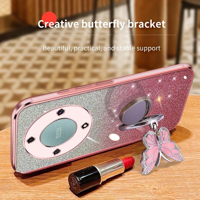 Θήκη κινητού τηλεφώνου TPU με σχέδιο πεταλούδας από glitter σε αποχρώσεις (Ροζ) για Honor X9a. (Ασημί)