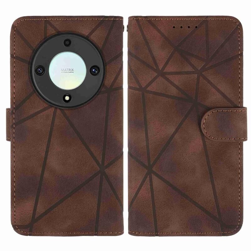 Για Honor X9a δέρμα αίσθηση γεωμετρικές γραμμές δέρμα τηλέφωνο υπόθεση (καφέ)