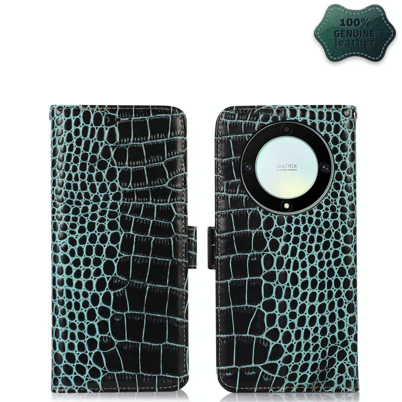 Θήκη τηλεφώνου από γνήσιο δέρμα αγελάδας με επικάλυψη κροκόδειλου για Honor X9a/X40 5G (πράσινο)