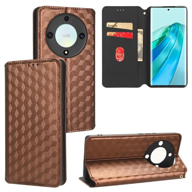Θήκη τηλεφώνου από δέρμα με ανάγλυφη υφή κυβικού πλέγματος για Honor X9a / X40 / Magi5 Lite (Μαύρο)