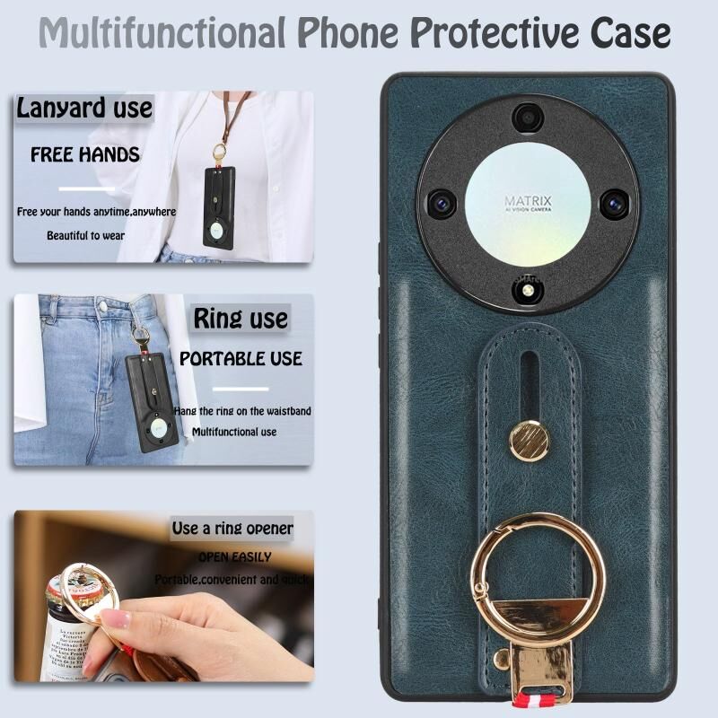 Δερμάτινη θήκη τηλεφώνου με λουράκι για Honor X9A / X40 / Magic5 Lite (Μπλε)