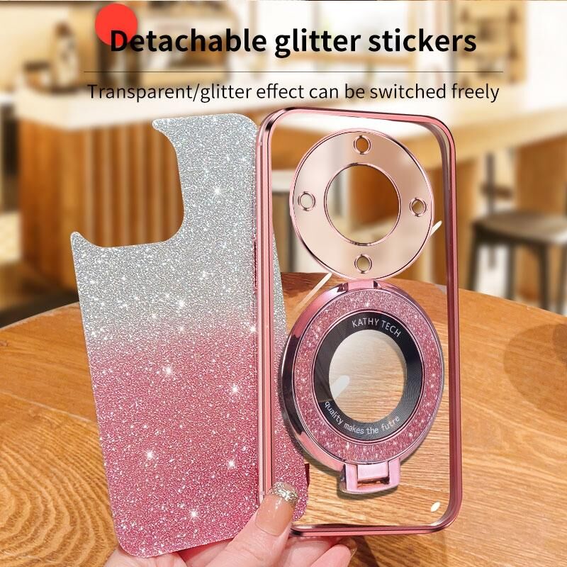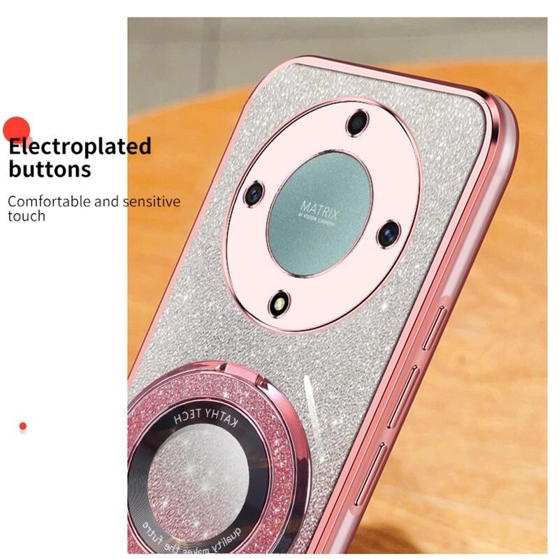 Για Honor X9a / X40 Επιμεταλλωμένο διαβάθμιση Glitter Γύρος κάτοχος TPU τηλέφωνο υπόθεση (μαύρο)