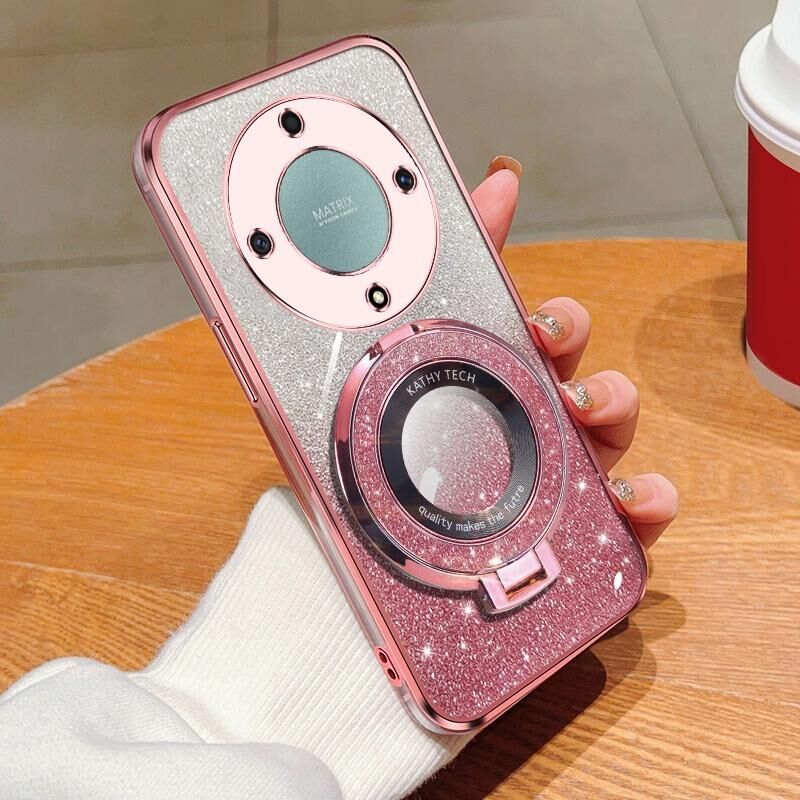 Για Honor X9a / X40 Επιμεταλλωμένο διαβάθμιση Glitter Γύρος κάτοχος TPU τηλέφωνο υπόθεση (ροζ)