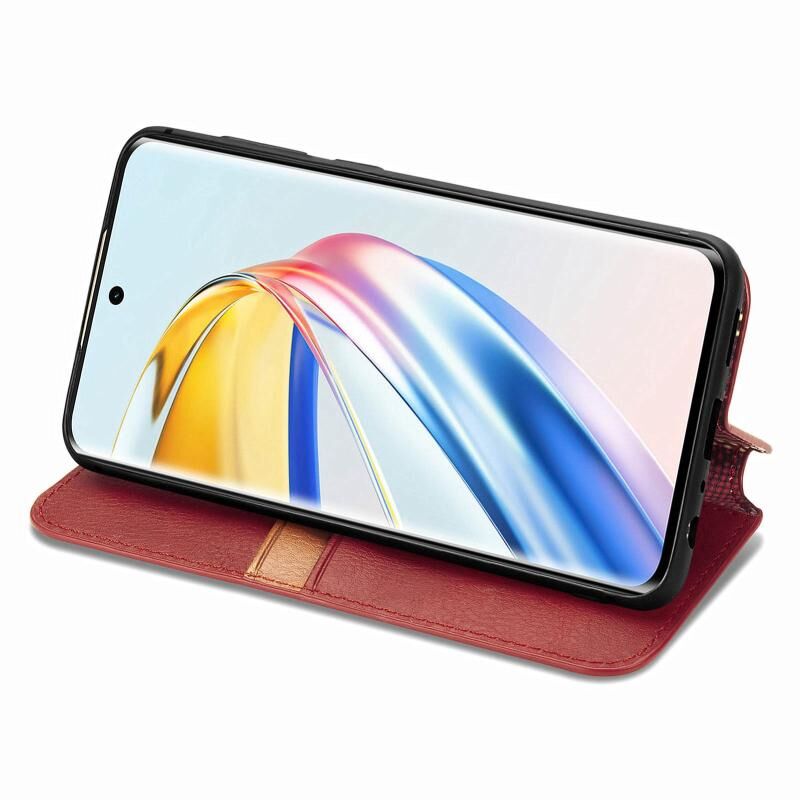 Για Honor X9b 4G Cubic Grid πιέζεται μαγνητική δερμάτινη θήκη τηλεφώνου (κόκκινο)