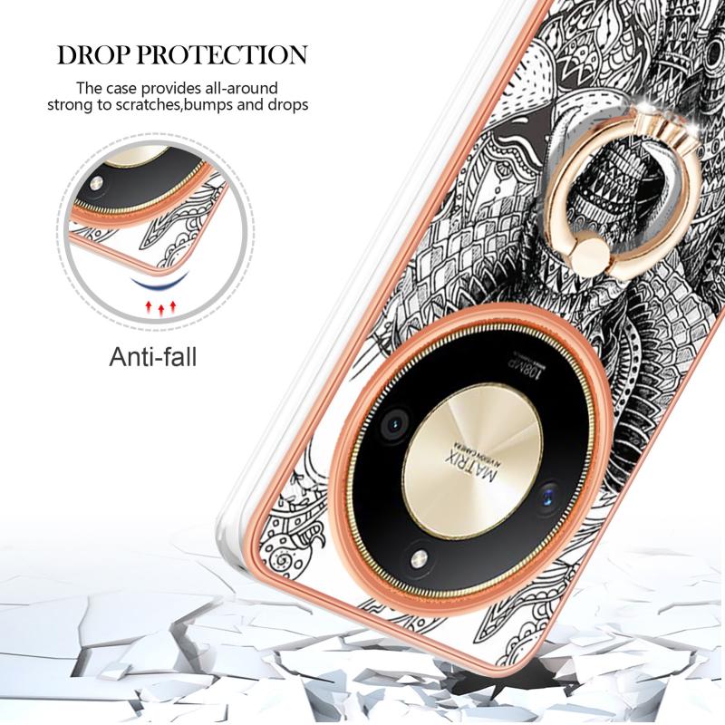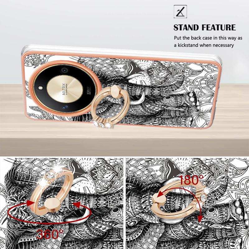 Θήκη τηλεφώνου For Honor X9b με ηλεκτρολυτική επιμετάλλωση, διπλής όψης IMD με δακτύλιο στήριξης (Totem Elephant)