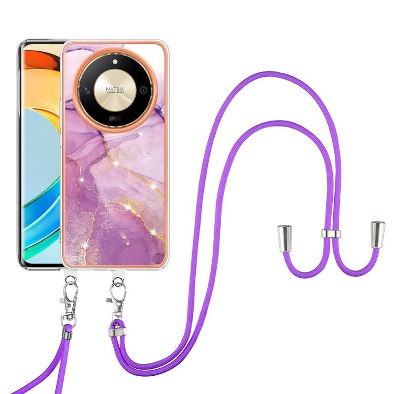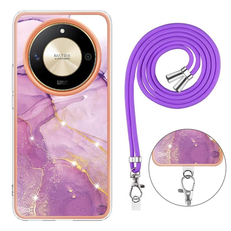 Θήκη τηλεφώνου για Honor X9b με ηλεκτρολυτική επίστρωση, σχέδιο μάρμαρου, διπλής όψης IMD με κορδόνι (Μωβ 001)