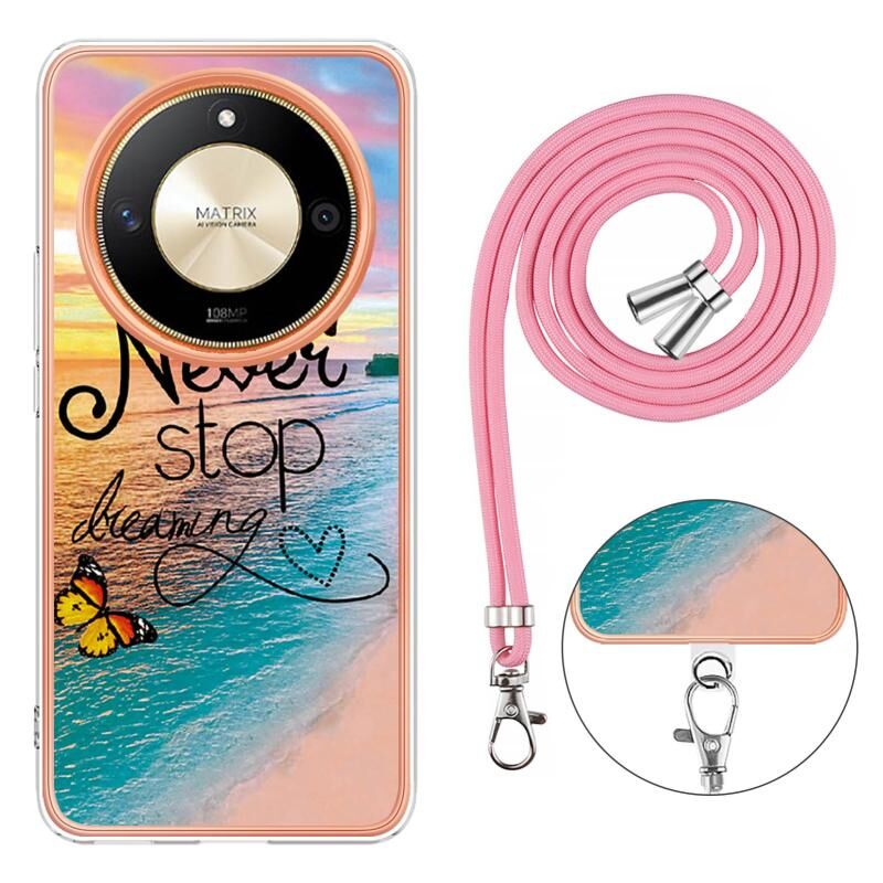 Θήκη προστασίας για Honor X9b με μοτίβο ηλεκτρολυτικής επιμετάλλωσης IMD TPU, ανθεκτική σε κρούσεις, με λουρί λαιμού (Πεταλούδα που κυνηγάει όνειρα)
