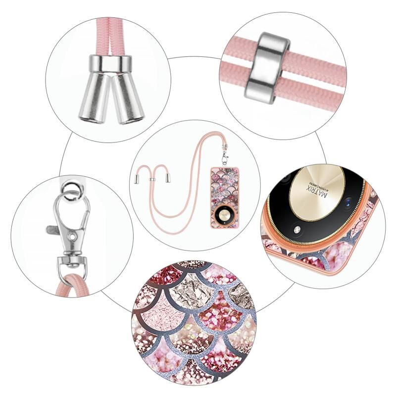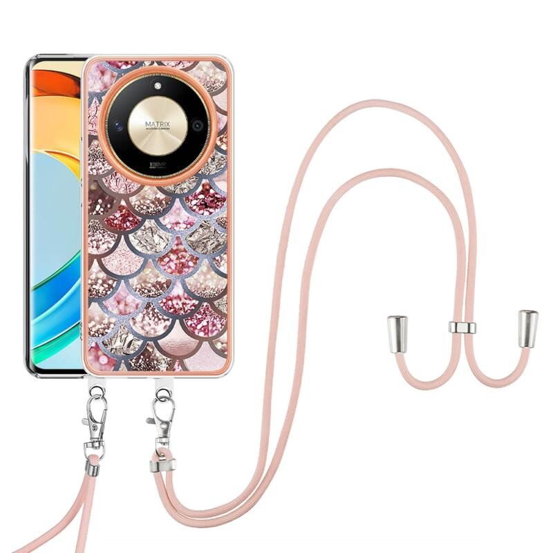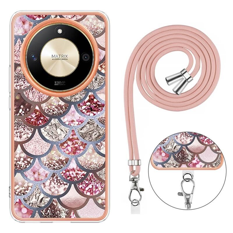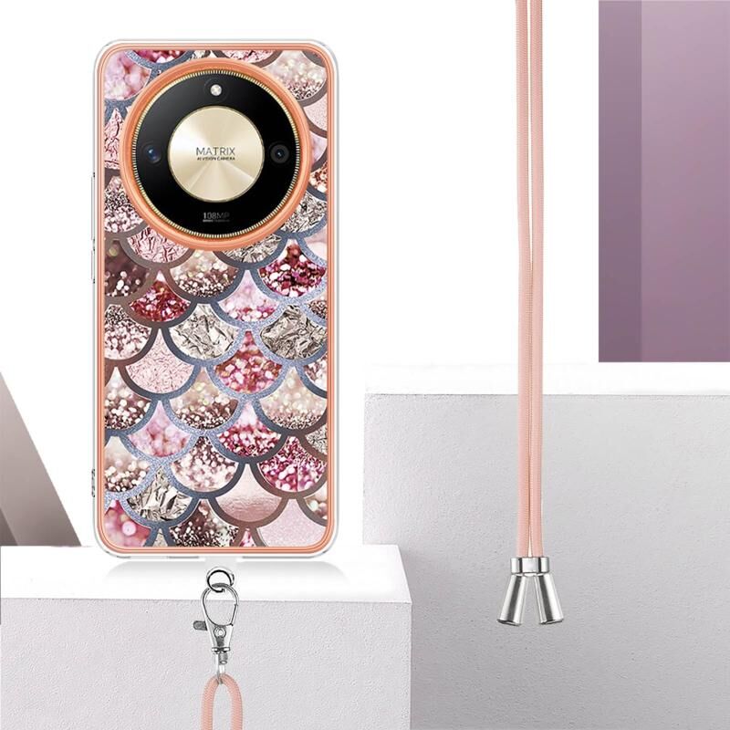 Θήκη για Honor X9b με Γαλβανισμό, Μοτίβο IMD, Αντικραδασμική από TPU με Λουρί Λαιμού (Ροζ Λέπια)