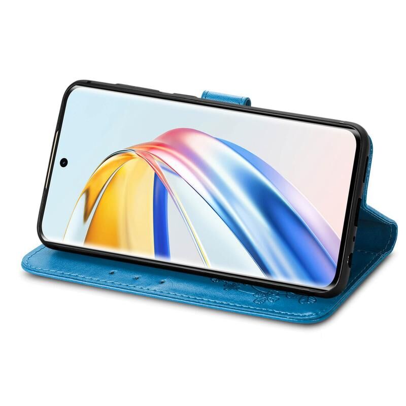 Για Honor X9b τετράφυλλο κούμπωμα ανάγλυφη δερμάτινη θήκη τηλεφώνου (μπλε)