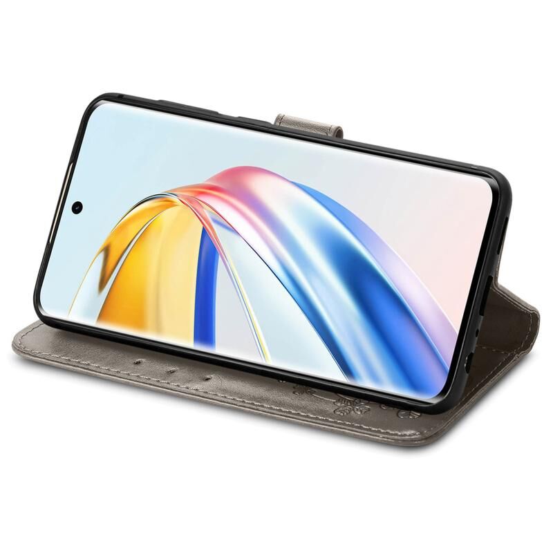 Για Honor X9b τετράφυλλο κούμπωμα ανάγλυφη δερμάτινη θήκη τηλεφώνου (γκρι)