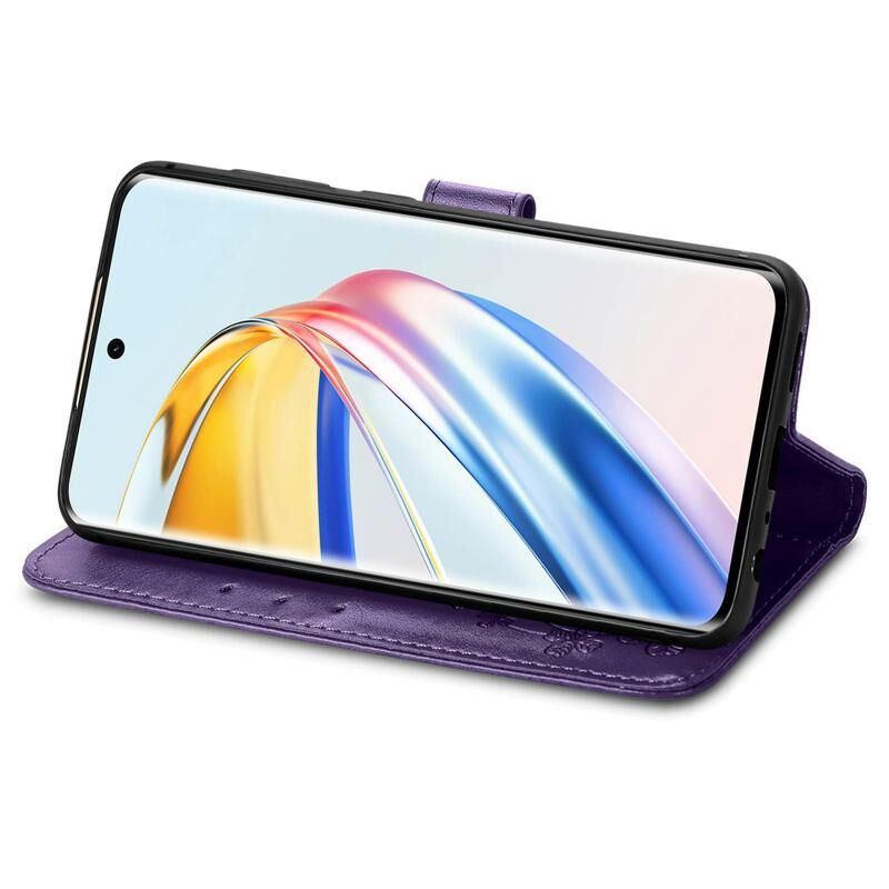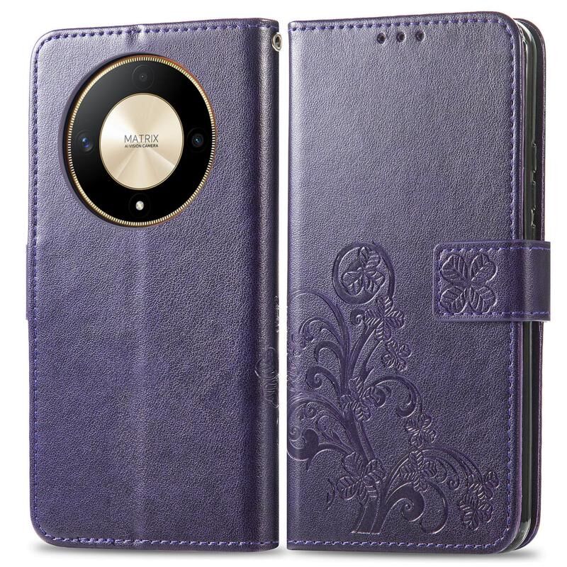 Για Honor X9b τετράφυλλο κούμπωμα ανάγλυφο δέρμα τηλέφωνο υπόθεση (μωβ)