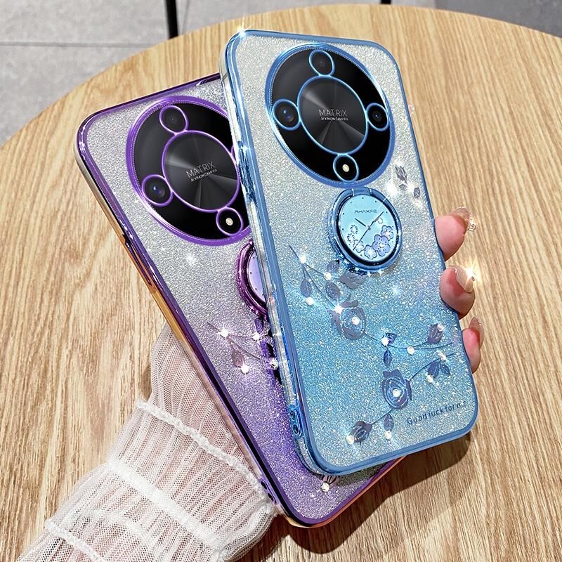 Θήκη κινητού τηλεφώνου For Honor X9b Gradient Glitter Immortal Flower Ring All-inclusive (Μπλε)