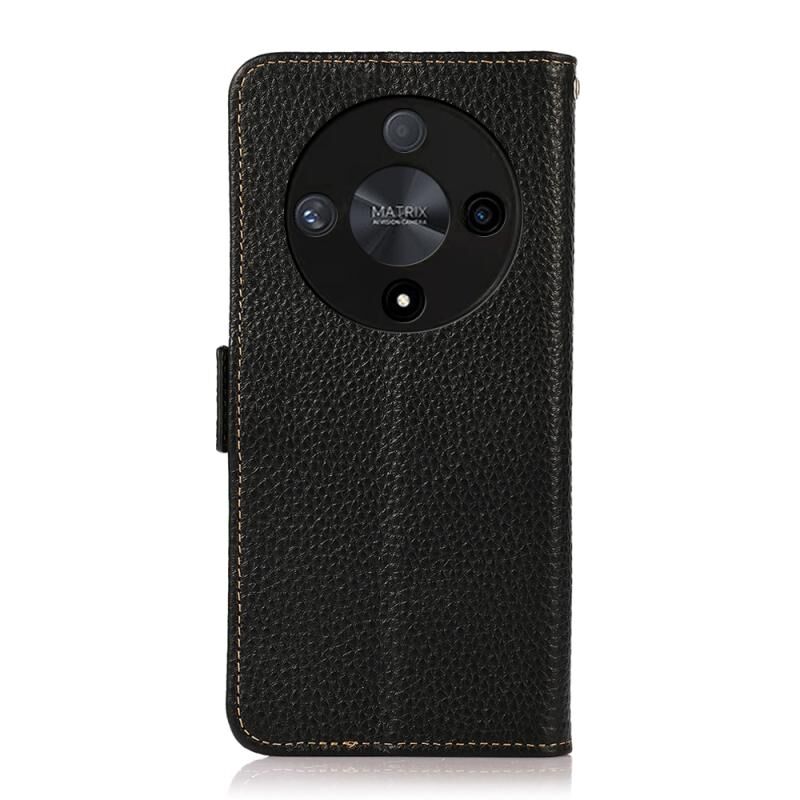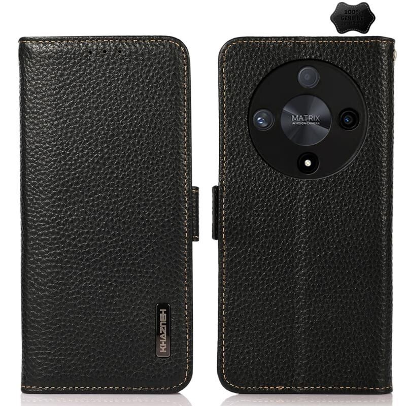 For Honor X9B KHAZNEH Side-Magnetic Litchi Genuine Leather RFID Phone Case(Black)