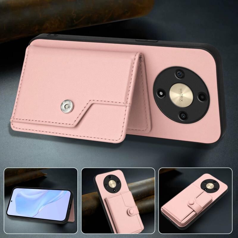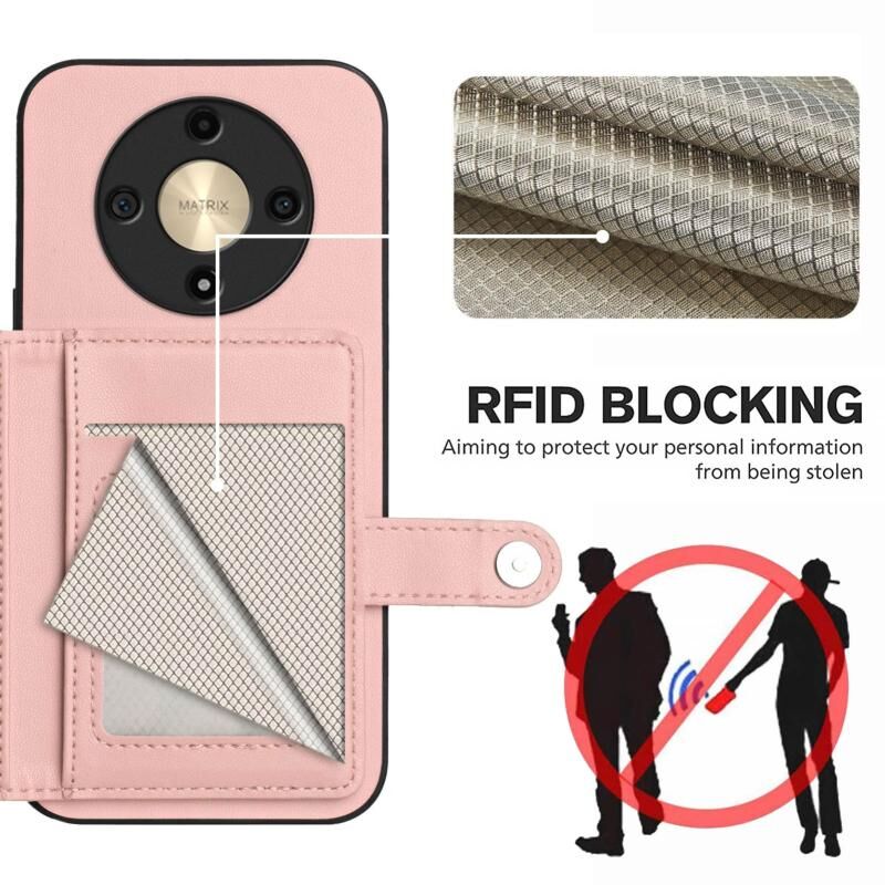Θήκη κινητού τηλεφώνου με κάρτες και προστασία RFID κατά της κλοπής για Honor X9b / Magic6 Lite 5G (Ροζ)