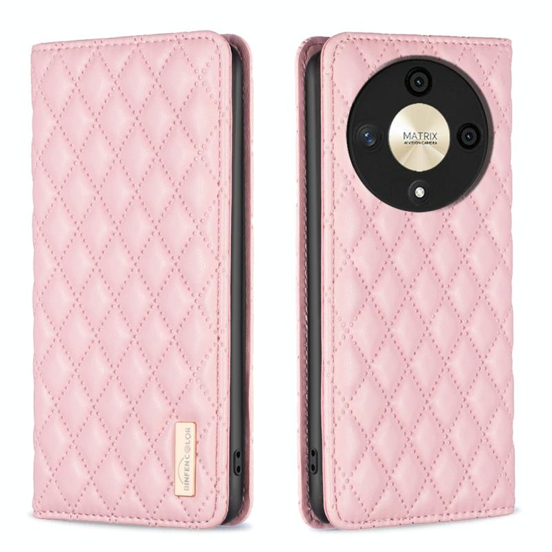 For Honor X9b/Magic6 Lite 5G Diamond Lattice Magnetic Leather Flip Phone Case(Pink)