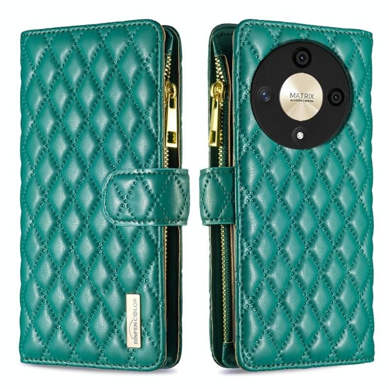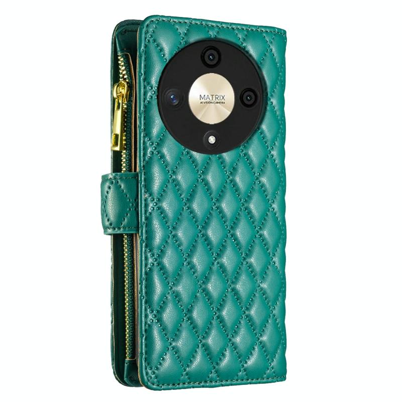 For Honor X9b/Magic6 Lite 5G Diamond Lattice Zipper Wallet Leather Flip Phone Case(Green)