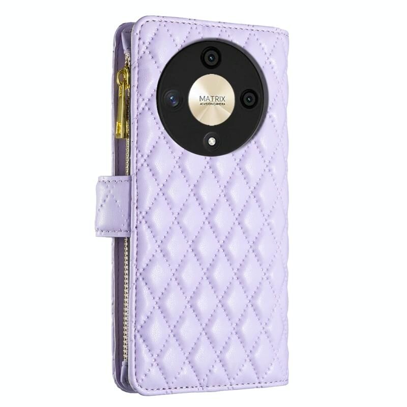 For Honor X9b/Magic6 Lite 5G Diamond Lattice Zipper Wallet Leather Flip Phone Case(Purple)