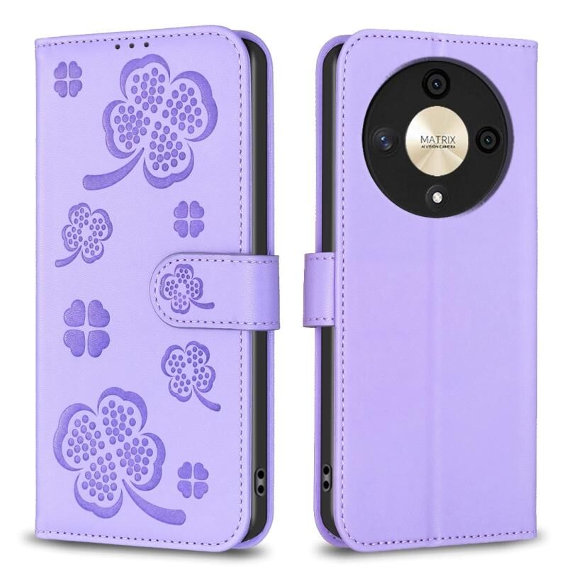 For Honor X9b/Magic6 Lite 5G Four-leaf Embossed Leather Phone Case(Purple)