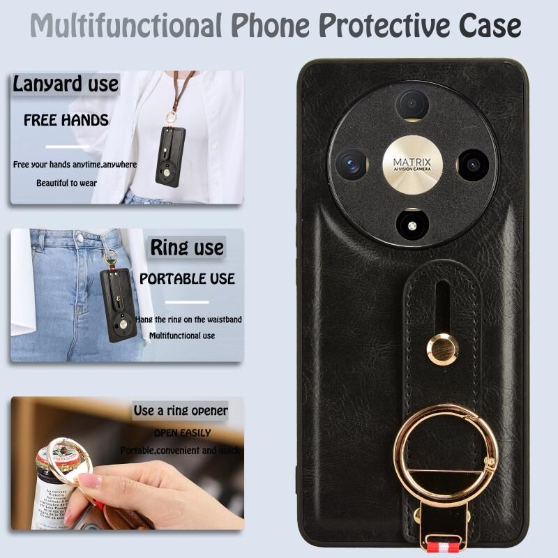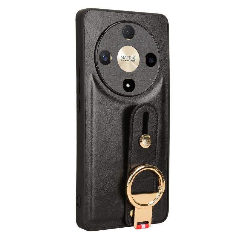 Για Honor X9b / Magic6 Lite 5G Wristband δέρμα πίσω τηλέφωνο υπόθεση (Μαύρο)