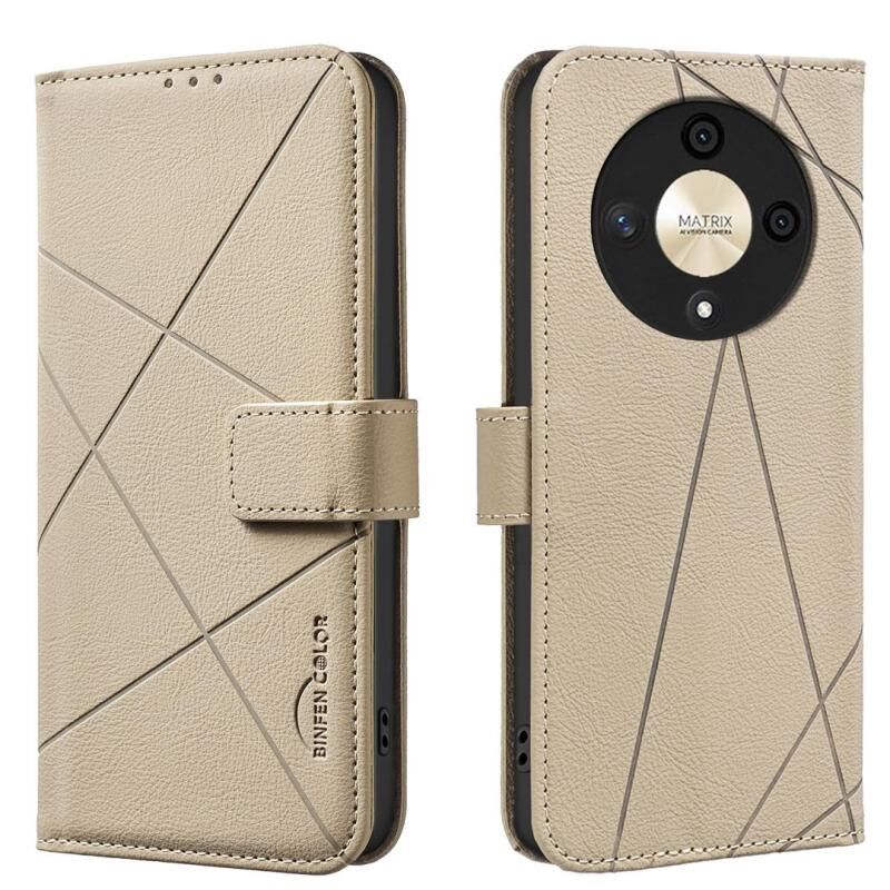 For Honor X9B / Magic6 Lite Geometric Pattern RFID Leather Phone Case(Beige)