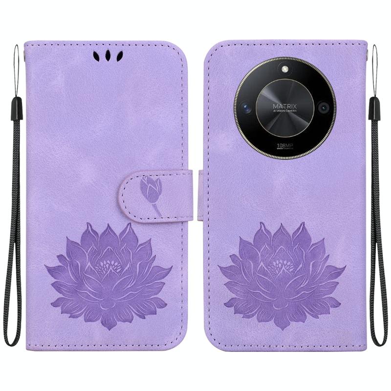 For Honor X9b / Magic6 Lite Lotus Embossed Leather Phone Case(Purple)