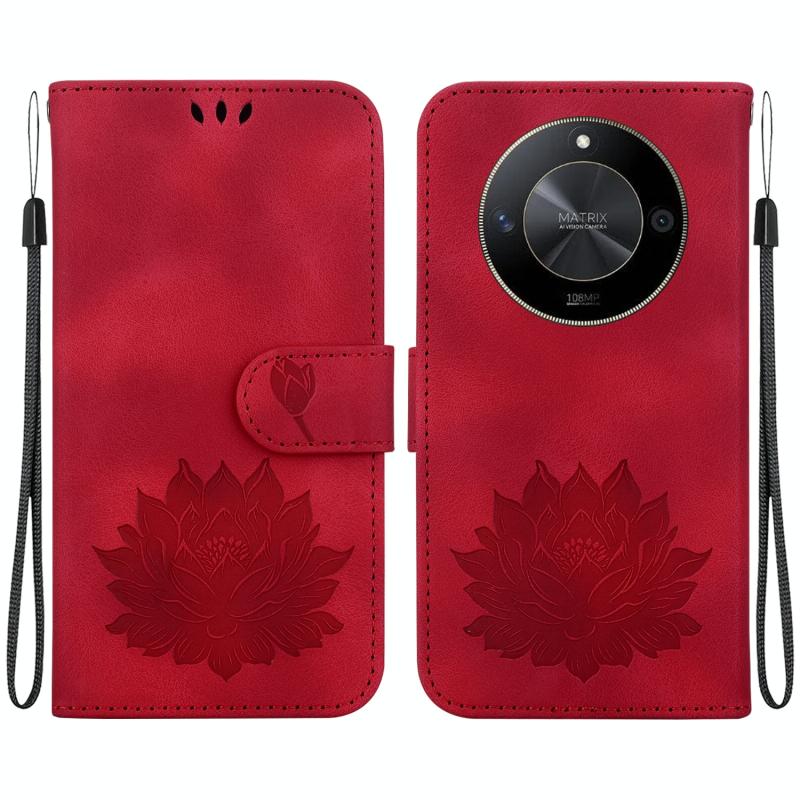 For Honor X9b / Magic6 Lite Lotus Embossed Leather Phone Case(Red)
