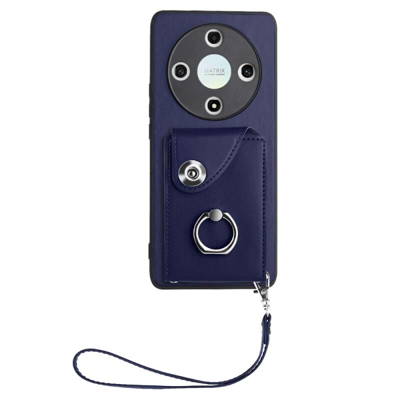 Για Honor X9b / Magic6 Lite Οργάνου κάρτα τσάντα δαχτυλίδι κάτοχος PU τηλέφωνο υπόθεση με κορδόνι (μπλε)