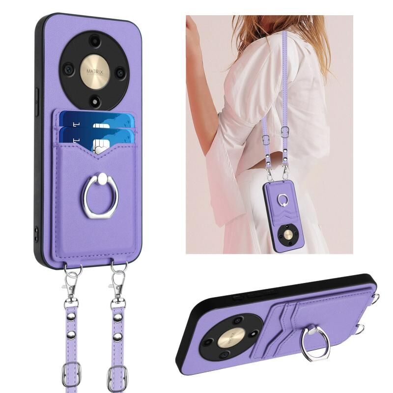 Για Honor X9b / Magic6 Lite R20 Crossbody σχοινί δαχτυλίδι κάρτα κάτοχος υπόθεση τηλεφώνου (μωβ)