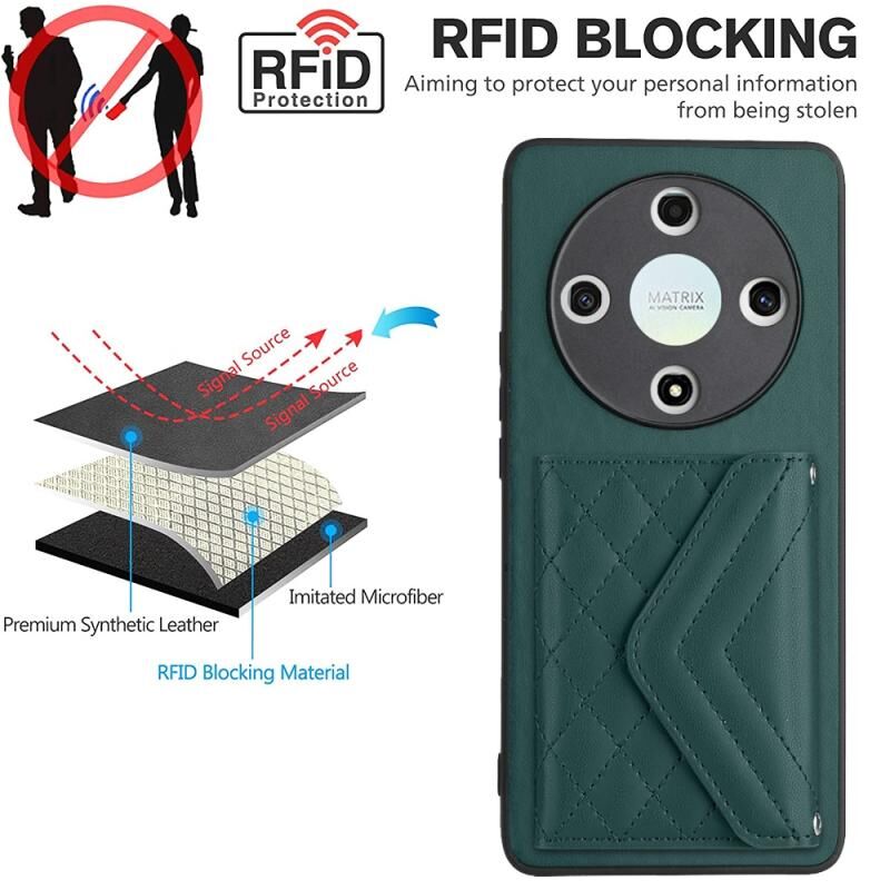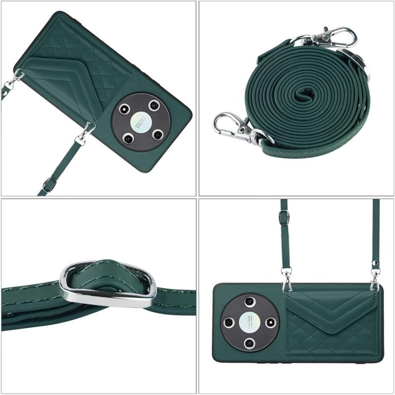 Για Honor X9b / Magic6 Lite Rhombic Υφή κάρτα τσάντα RFID υπόθεση τηλεφώνου με μακρύ κορδόνι (πράσινο)