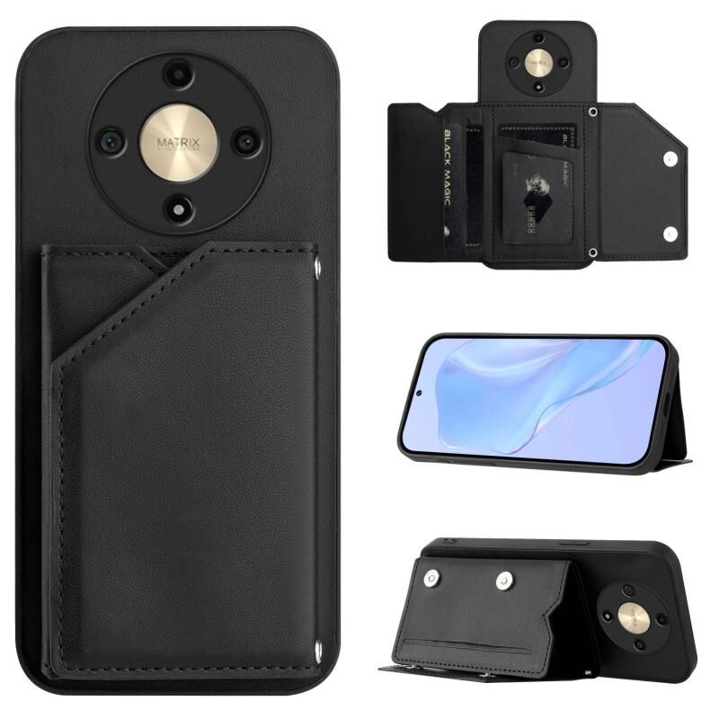 Θήκη τηλεφώνου για Honor X9b / Magic6 Lite με αίσθηση δέρματος, τέσσερις θήκες καρτών και λουρί καρπού (Ροζ)