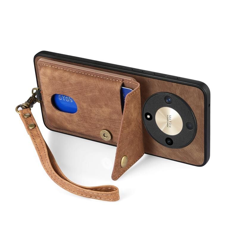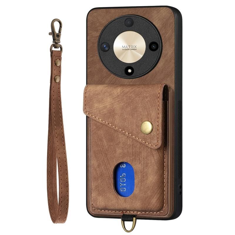 Για Honor X9b Ρετρό κάρτα πορτοφόλι πτυσσόμενο δερμάτινη θήκη τηλεφώνου με λουράκι (καφέ)