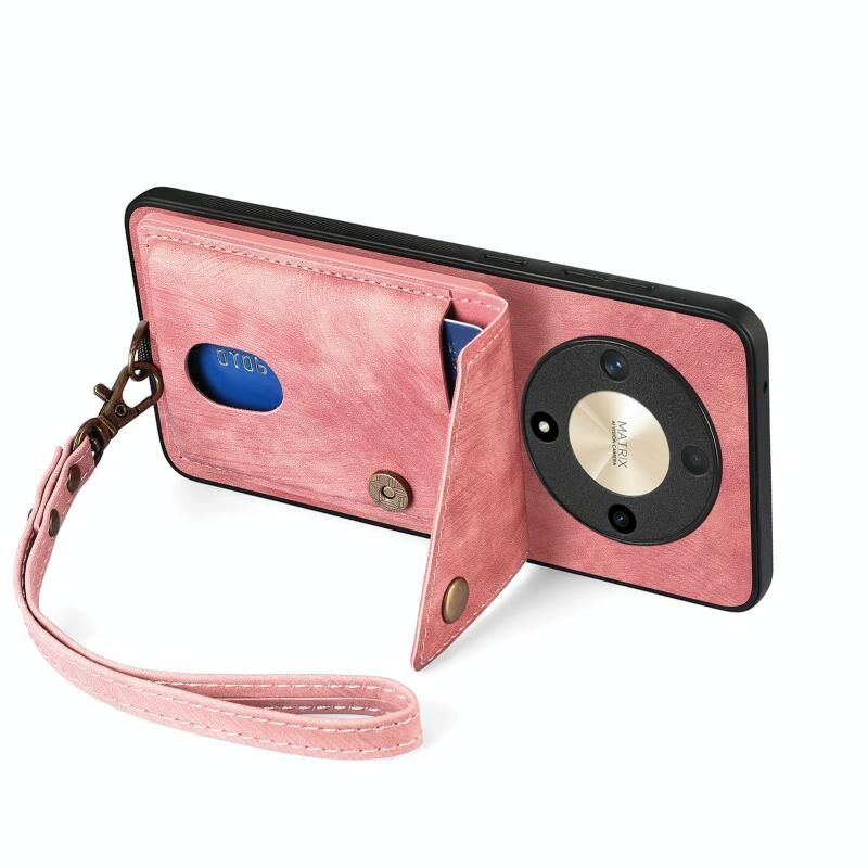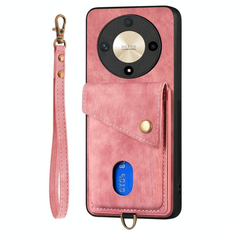 Για Honor X9b Ρετρό κάρτα πορτοφόλι πτυσσόμενο δερμάτινη θήκη τηλεφώνου με λουράκι (ροζ)