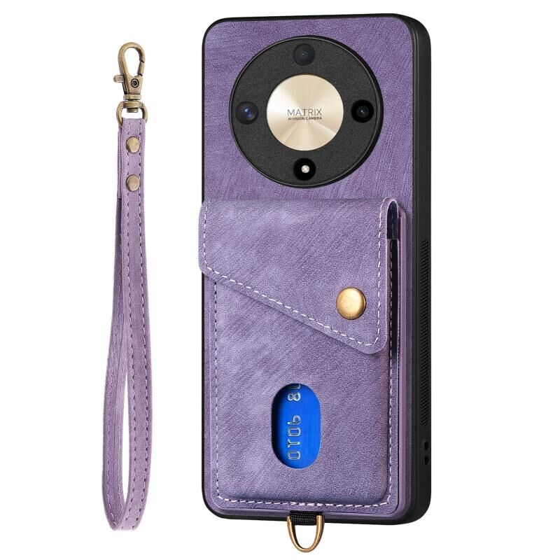 Για Honor X9b Ρετρό κάρτα πορτοφόλι Fold δερμάτινη θήκη τηλεφώνου με λουράκι (μωβ)