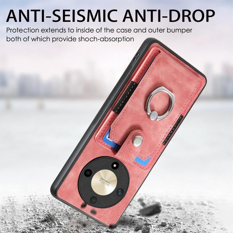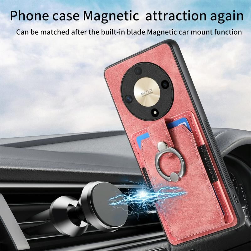 Για Honor X9b Ρετρό δέρμα αίσθηση δαχτυλίδι κάρτας πορτοφόλι υπόθεση τηλεφώνου (ροζ)