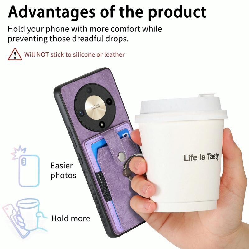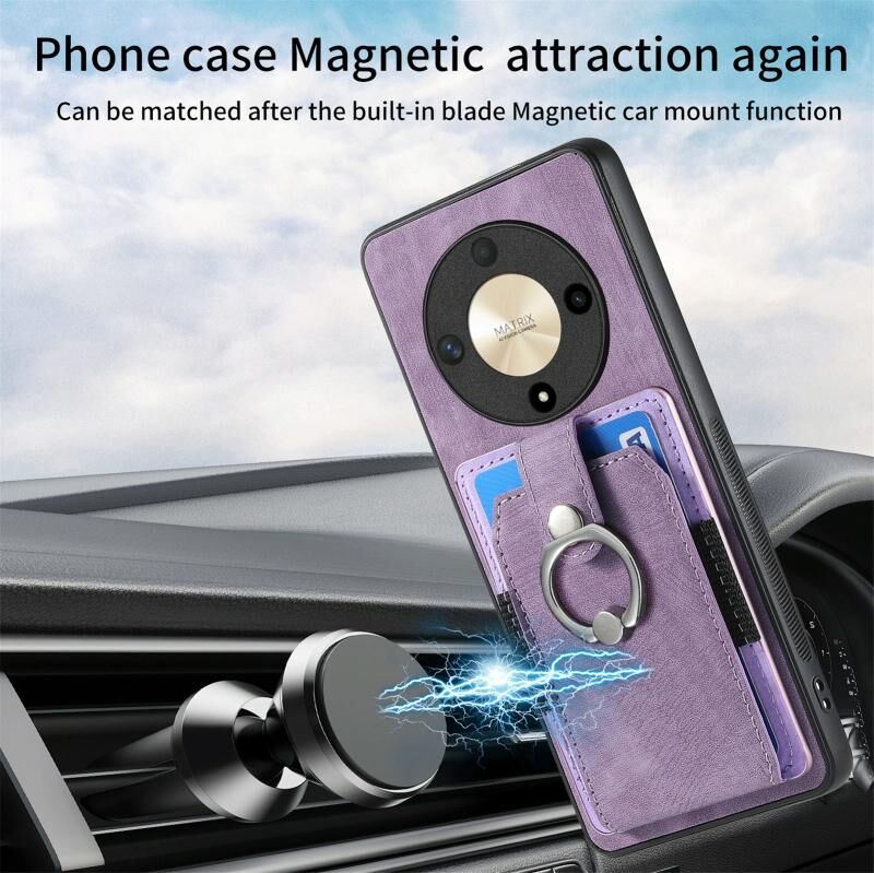 Για Honor X9b Ρετρό δέρμα αίσθηση δαχτυλίδι κάρτας πορτοφόλι υπόθεση τηλεφώνου (μωβ)