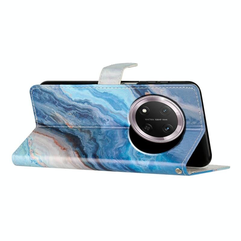 Θήκη τηλεφώνου από δέρμα με σχέδιο και χρώματα για Honor X9c 5G (Μπλε Πεταλούδα)
