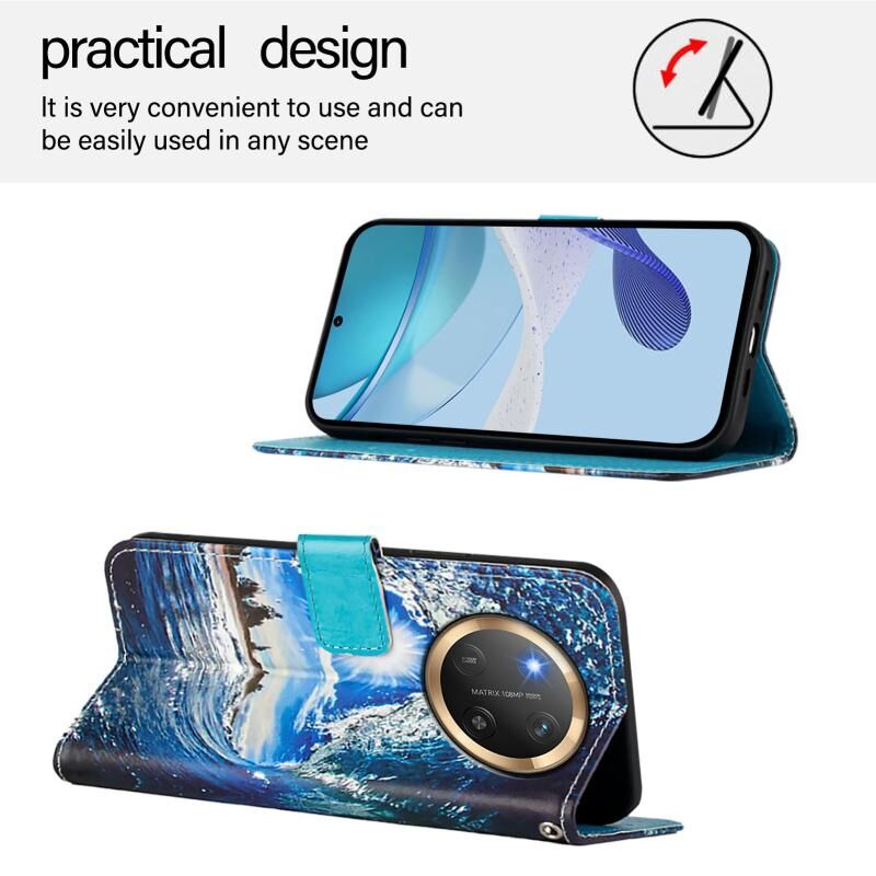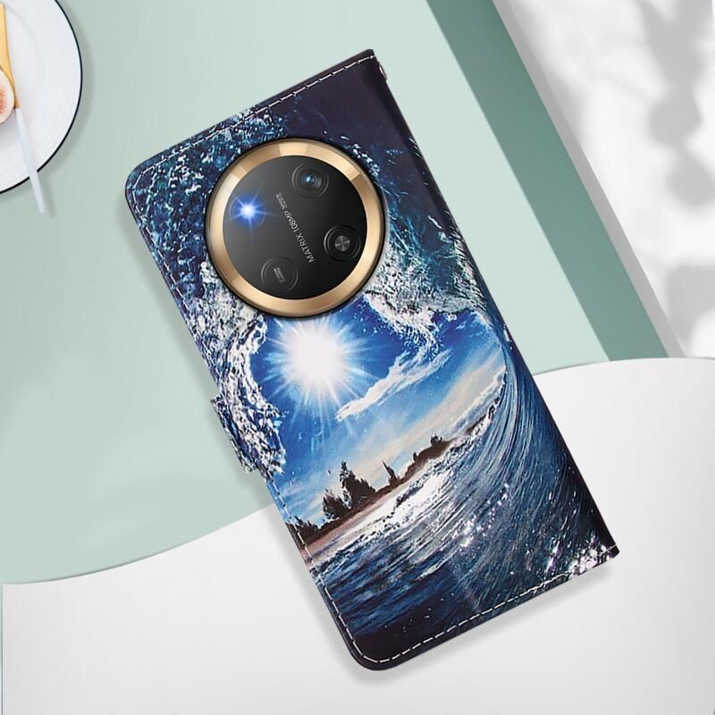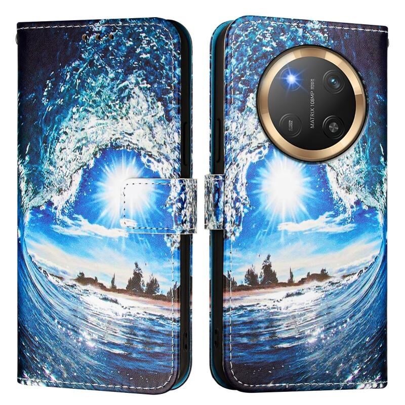 Θήκη κινητού τηλεφώνου από δέρμα με απλή ύφανση και πολύχρωμο σχέδιο (κύματα και ήλιος) για Honor X9c 5G.