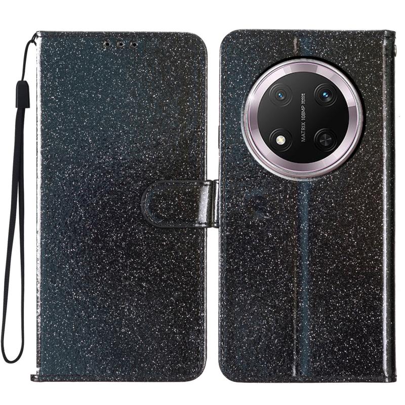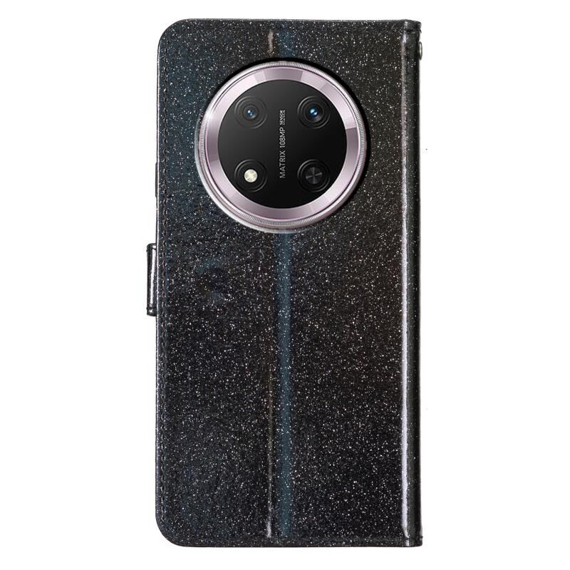 Θήκη τηλεφώνου από δέρμα με γκλίτερ σε σκόνη για Honor X9c 5G (Μαύρο)