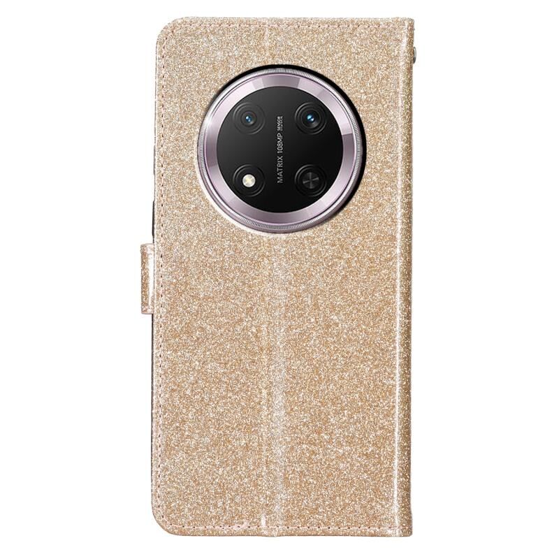 Θήκη τηλεφώνου από δέρμα με γκλίτερ σε σκόνη για Honor X9c 5G (Χρυσός)