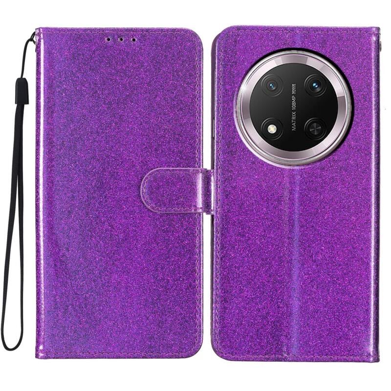Θήκη τηλεφώνου από δέρμα με γκλίτερ σε σκόνη για Honor X9c 5G (Μωβ)