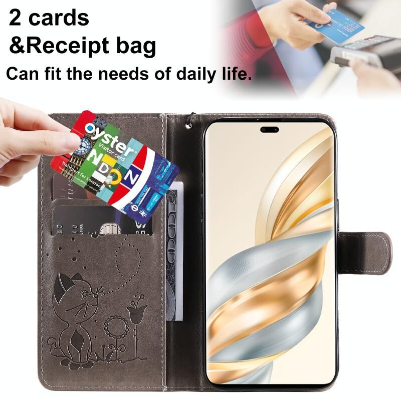 Για Honor X9C 5G Global Cat Bee ανάγλυφο μοτίβο Shockproof δερμάτινη θήκη (γκρι)