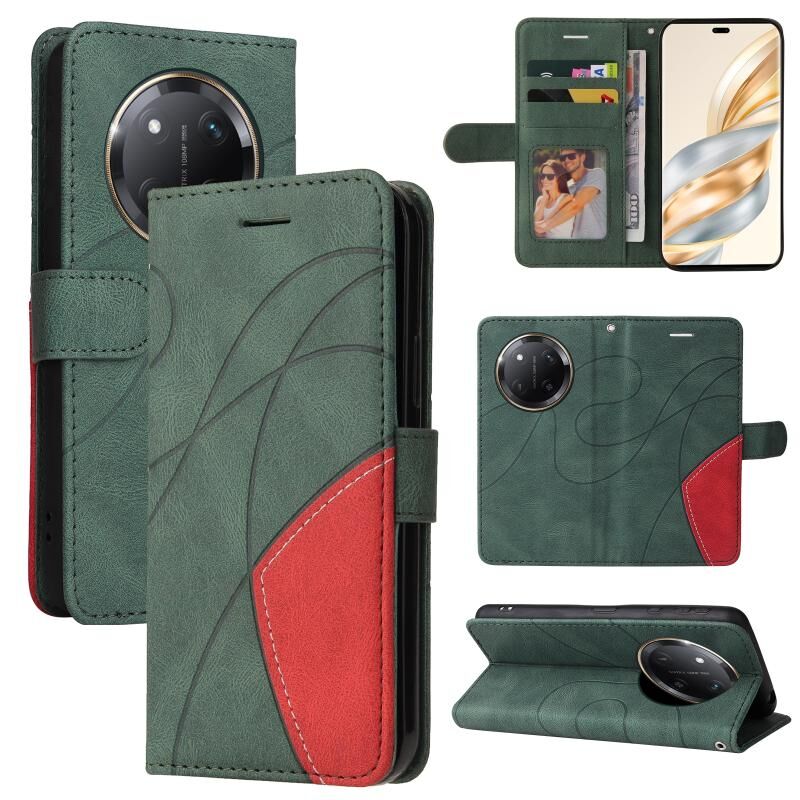 Για Honor X9C 5G Παγκόσμια Διπλό χρώμα Splicing Flip δέρμα τηλέφωνο υπόθεση (πράσινο)