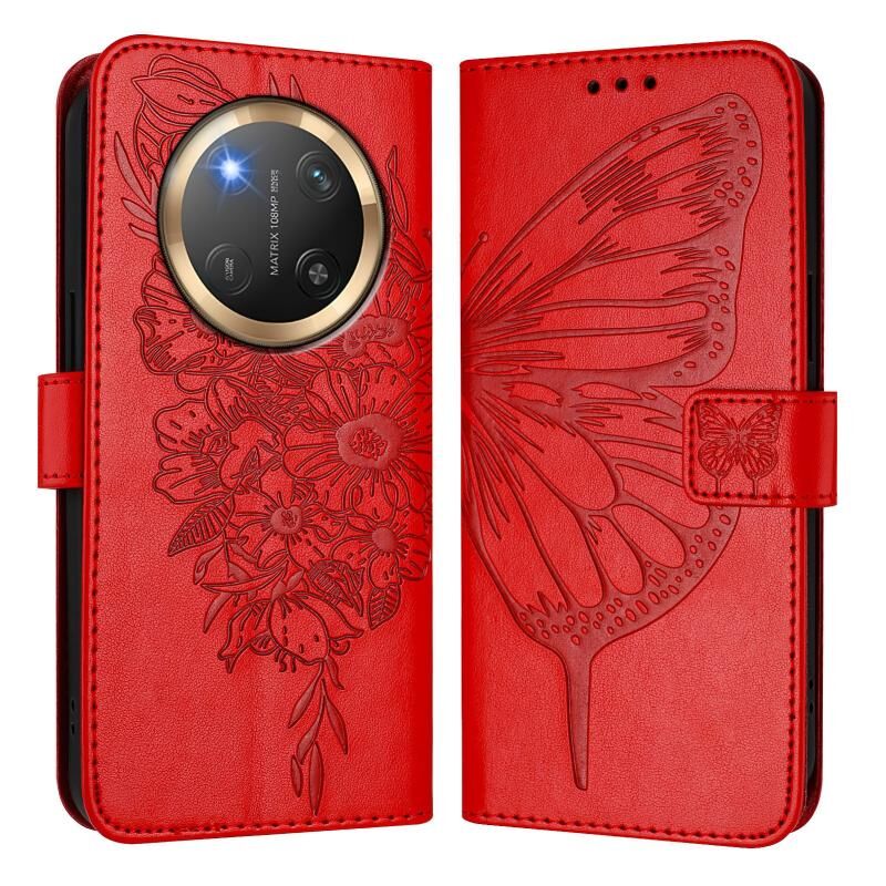 Θήκη τηλεφώνου δέρμα με ανάγλυφο σχέδιο πεταλούδας για Honor X9C 5G Global (Κόκκινο)