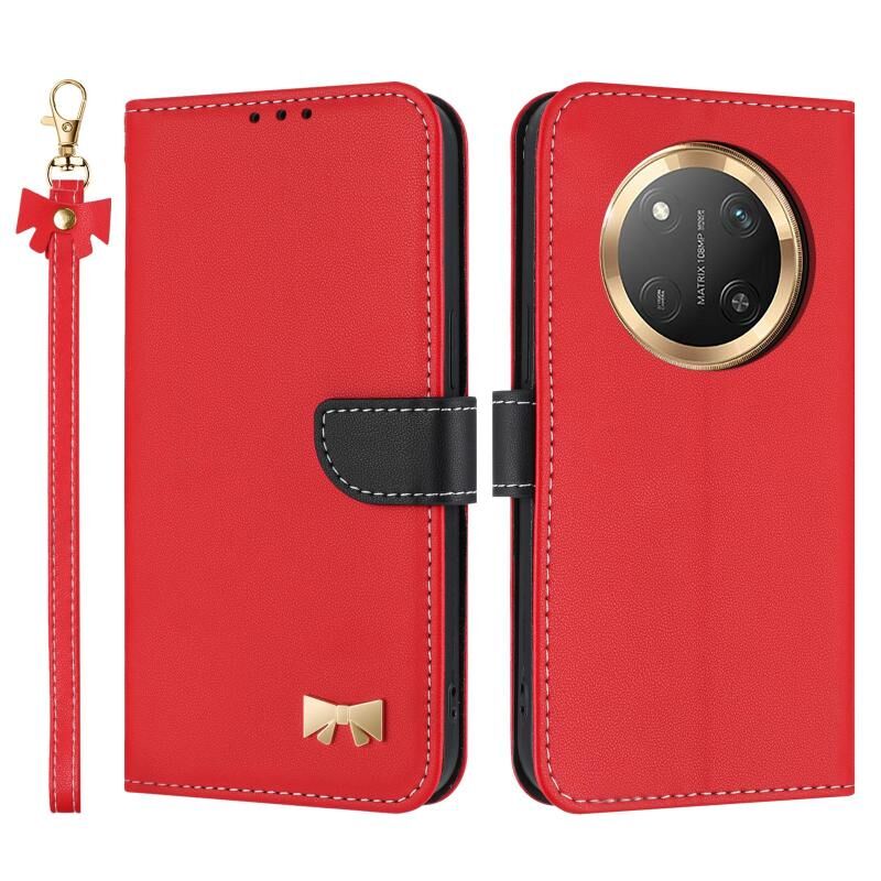 Θήκη τηλεφώνου από μέταλλο και δέρμα με λουρί χειρός για Honor X9c 5G Global (Κόκκινο)