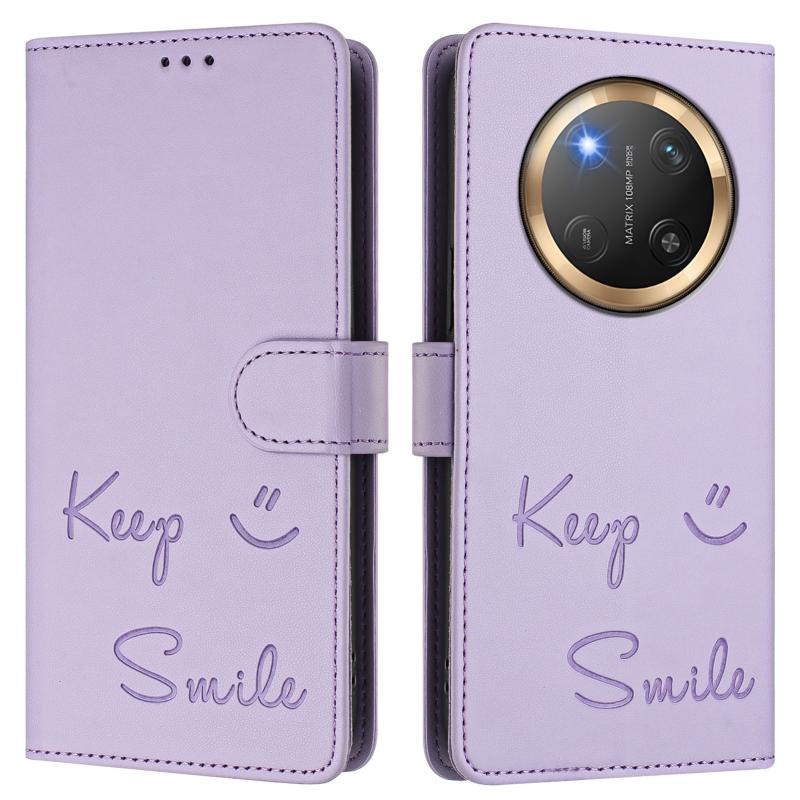 Θήκη τηλεφώνου δερμάτινη με ανάγλυφο "Global Smile" και τεχνολογία RFID για Honor X9c 5G (ανοιχτό μωβ)