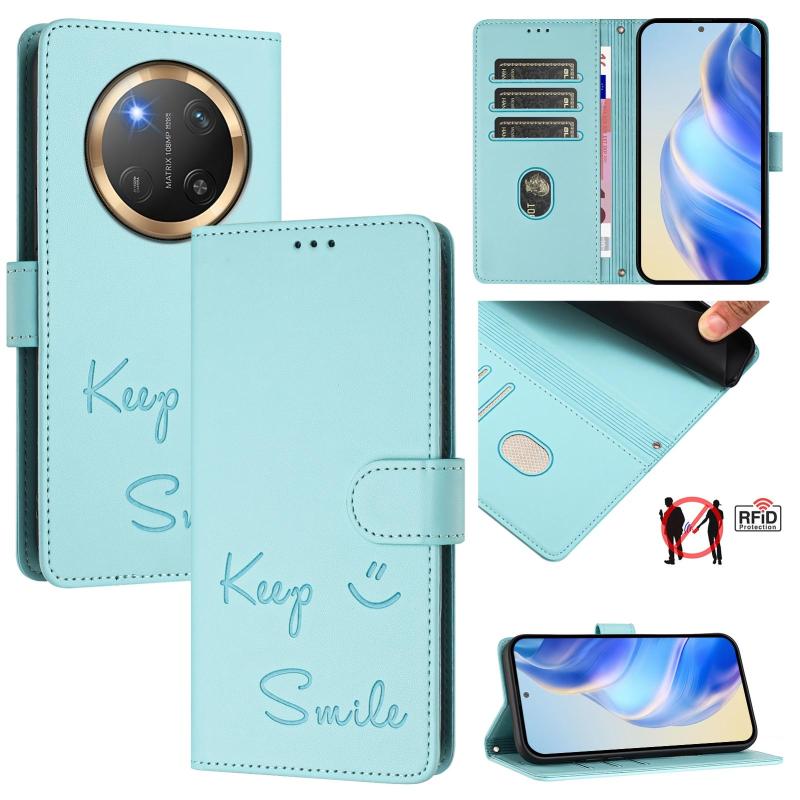 For Honor X9c 5G Global Smile Embossing RFID Leather Phone Case(Mint Green)