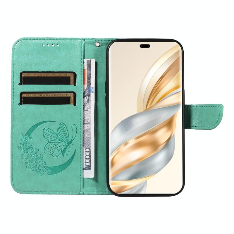 Θήκη τηλεφώνου από δέρμα με ανάγλυφο σχέδιο πεταλούδας Swallowtail για Honor X9C 5G (πράσινο)